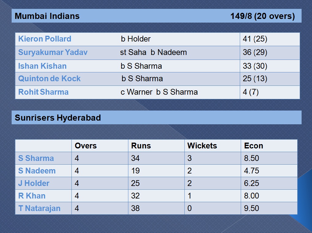 IPL: MUMBAI INDIANS VS SUNRISERS HYDERABAD