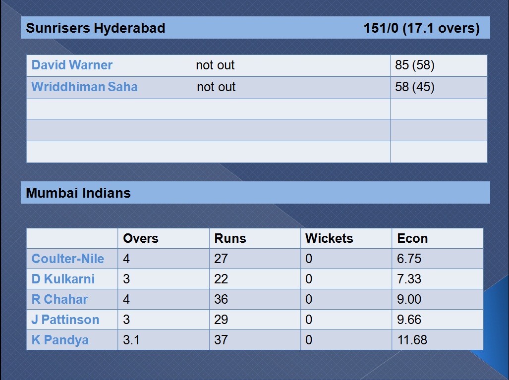 Match result: Sunrisers Hyderabad won by 10 wickets